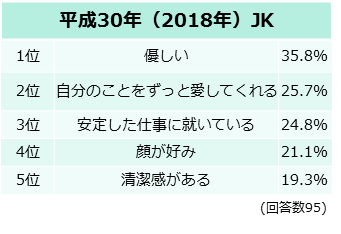 もし結婚をするなら、相手に望む条件は?(最大3つまで)【平成30年(2018年)JK】調査結果