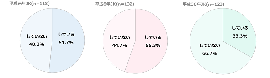 平成30年が最もアルバイトをしている割合が低い結果に。
