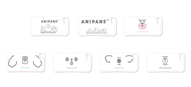 本コラボの「WAYLLY」は、従来の”壁にくっつく”特徴に加えて「DRESSER」という着せ替えデザインシートを新搭載した、同日発売の新作です。今回は、ジョージぱんをはじめとした主要5キャラクターの集合カットや、各キャラクターの顔のアップなど全7種をご用意。『ANIPANS』の特徴である”共感系ゆるきゅんキャラ”の可愛らしいデザインとなっております。