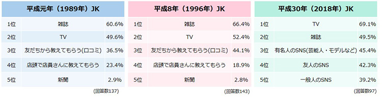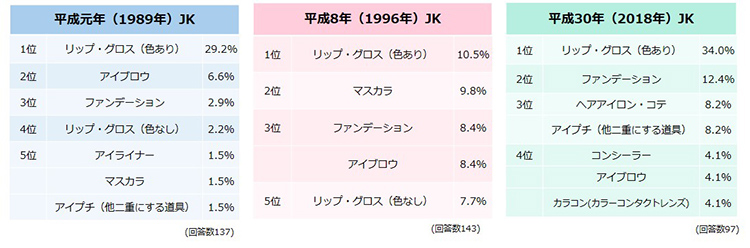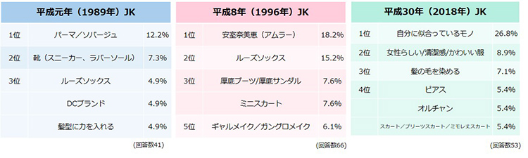 「平成の女子高生(JK)に関する世代別トレンド」調査 ~ファッション・美容編~
