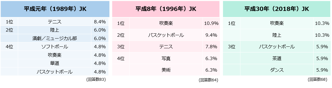フリュー株式会社(本社:東京都渋谷区、代表取締役社長:三嶋隆 以下、フリュー)が運営する女子高生・女子大生の動向調査・研究機関『GIRLS’TREND(ガールズトレンド) 研究所』は、2019年1月に「平成の女子高生(JK)に関する世代別トレンド」の調査を実施しました(サンプル数:403)。本レターは、2019年4月30日で平成が終わりを迎えるにあたり、平成元年(1989年)、平成8年(1996年)、平成30年(2018年)の各世代における女子高生の流行を比較する連続企画です。今回は、「スクールライフ」に関連する調査結果を以下のとおり発表いたします。