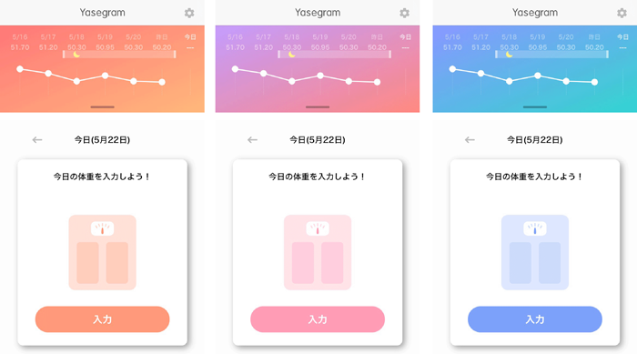 また、自分好みの画面デザインが3種類から選択でき、日々の入力に対するモチベーションアップを支援します。