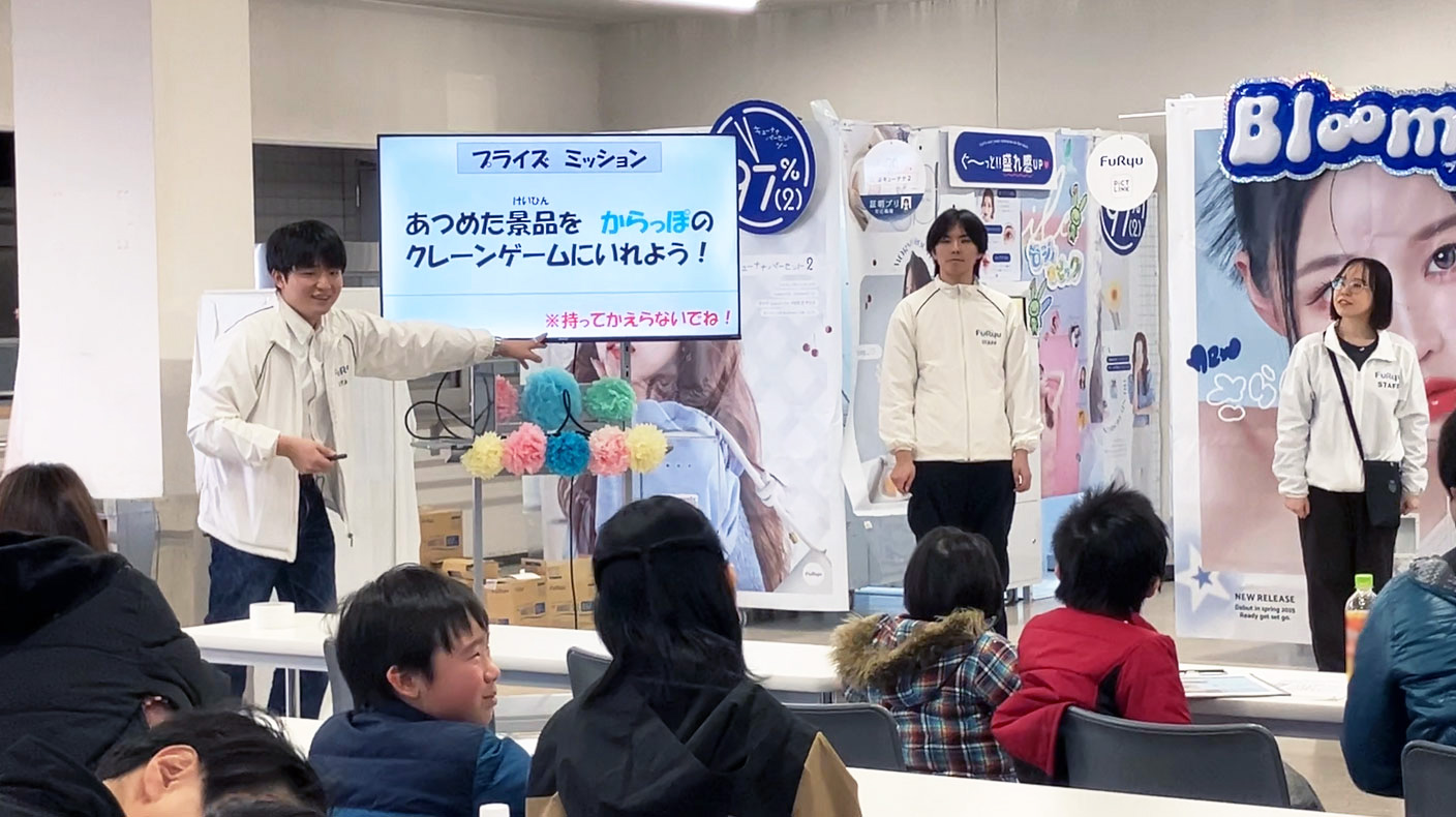 本取り組みは、フリューのプリントシール機(以下、プリ機)やアミューズメント景品(以下、プライズ)を始めとしたあらゆる商品の生産管理を担う同社一宮事業所と、日頃からフリュー商品の物流を担っているSGLが、次世代応援を目的に初の試みとして共同企画したものです。従業員の家族向けに実施することで、お子さまには親の働く姿を想像したり働くことに対しての興味関心を持つきっかけをつくり、従業員には自らが家族に充実した時間をお届けすることで“サステナビリティ”取り組みに対する理解や共感を獲得することを目指しています。