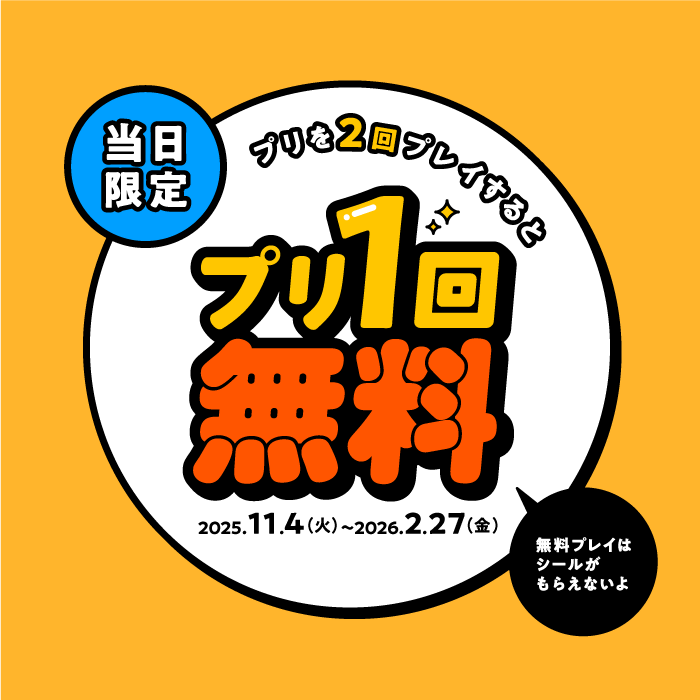 プリントシールリリースプリを2回撮ると3回目が無料に!フリューが期間限定の特別キャンペーンを実施 『当日3回目お得サービス』を11月4日からスタート!