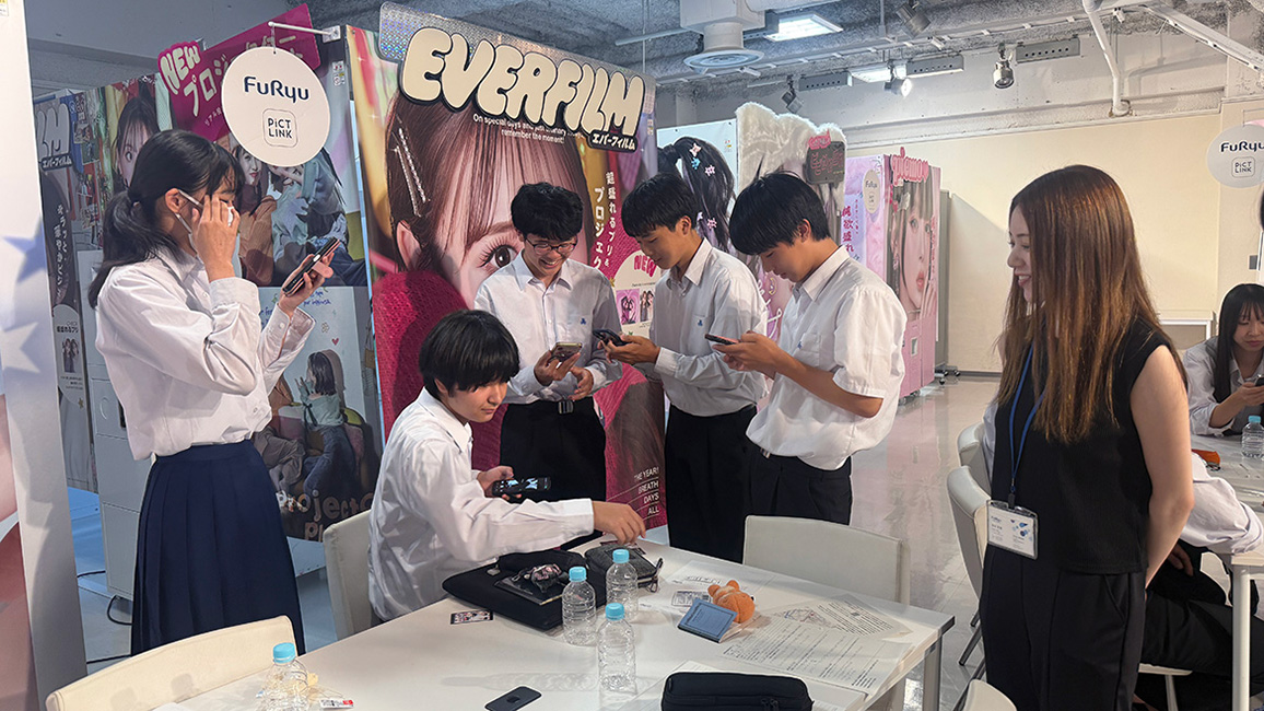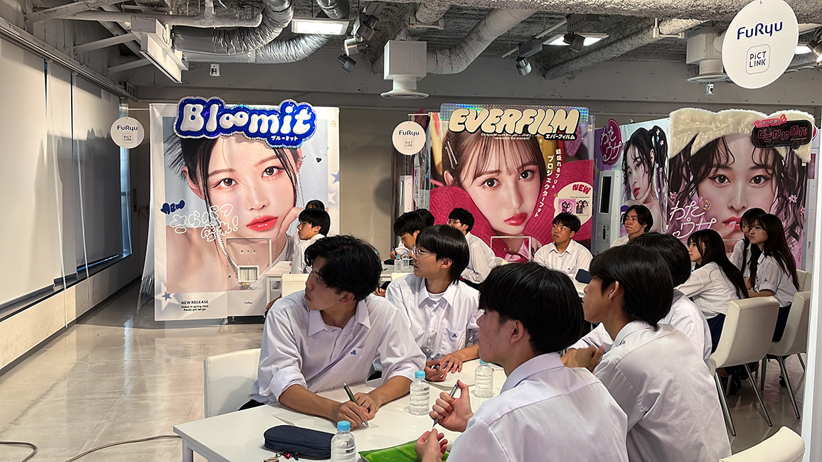 今回は、企業訪問を通じたキャリア学習を行う授業の一環として「フリューの事業内容と、商品づくりについてお話を聞きたい」と生徒の皆さんからご希望をいただき、受け入れが実現しました。