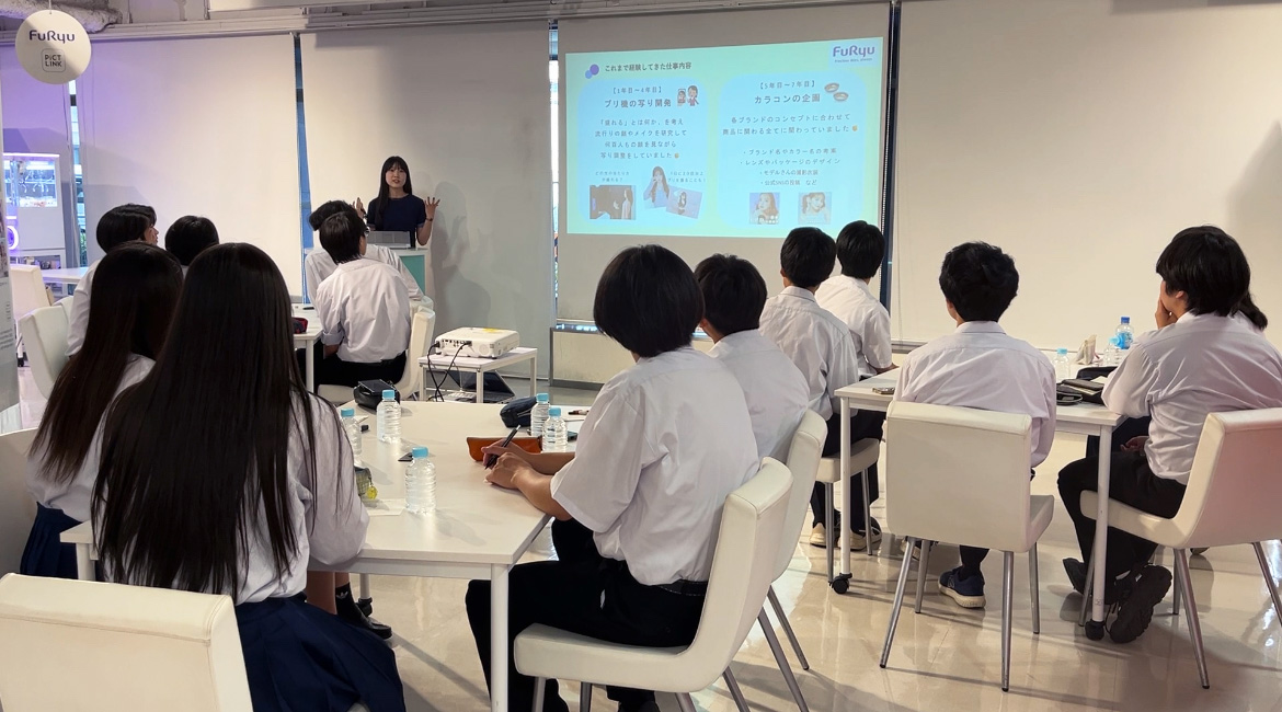 フリューでは、次世代の将来の選択肢を広げるきっかけづくりを支援したいという思いから、サステナビリティ取り組みの一環として企業訪問の受け入れを行っています。