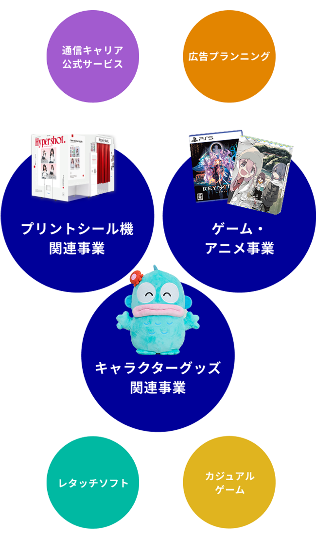 10代から20代の女性をメインターゲットとし、長年培ったマーケティング力と技術力を持つプリントシール機関連事業。