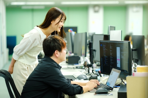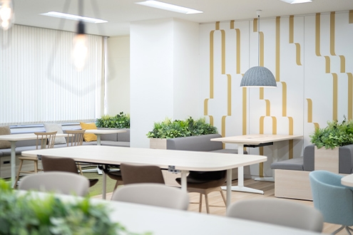 京都駅から徒歩5分の好立地にある京都事業所は、プリントシール機開発と、Webサービス開発の拠点です。京都タワーを目の前に臨む景観も魅力のオフィスです。