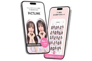 『ピクトリンク』は、フリューのプリントシール機(プリ)で撮影した画像(プリ画)を取得し、閲覧できるWebサイト/スマートフォンアプリ向けサービス。10年以上愛されている、プリユーザーにとってパートナーのような存在のサービスです。取得したプリ画は、『ピクトリンク』上に保存することができるので、保存した昔のプリ画を見返すこともできます。