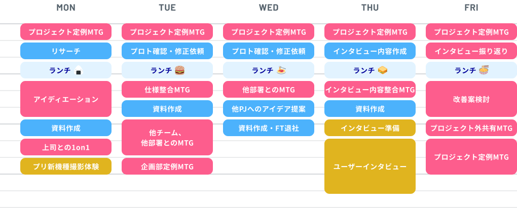 得意分野が異なるメンバーと議論することは新しいアイデアが生まれるきっかけにもなるので、他のメンバーとのコミュニケーションを大切にしています。自分自身の知識不足でデザイナーやエンジニアの話をすぐに理解できないこともありますが……そういう時は恥ずかしがらずに伝えるようにしています。企画外の知識を学ぶことは、今後企画を行う上で発想を広げる材料になると思うからです。