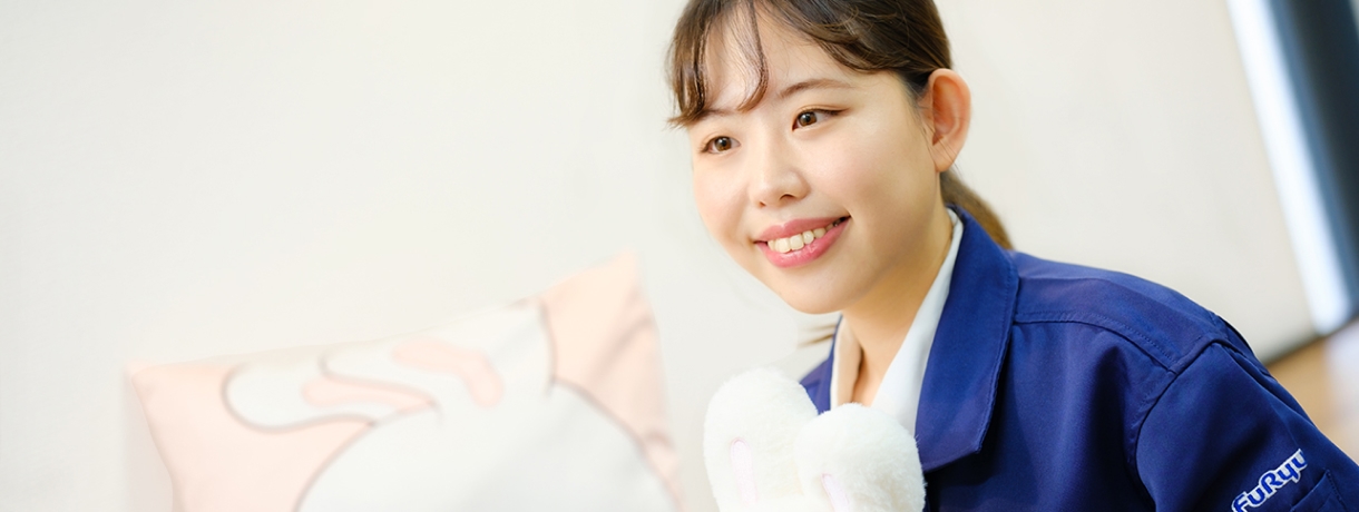 私は高専の機械工学科で材料力学や機械工学を勉強していたのですが、昔からライブが好きで、エンタテインメント業界に興味を持っていました。フリューはメーカーでありながら、エンタメの要素がすごく濃い会社です。それに、プリは女の子であれば誰もが一度は経験する遊びです。女子高生のときにいちどもプリを撮ったことがない人はほとんどいないはず。高専で自分が身に付けた専門知識を日本中の女の子のために使えたら素敵だなと思いました。