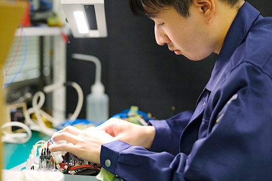 プリそのものの設計や搭載するデバイスの開発・評価を行っています。製品の安定動作やユーザーのプレイに対する安全性を確保しながら、ユーザーや開発に関わる人々の思いや要望を具現化しています。最新技術を取り入れ、安定・安全と楽しさを両立させるためのハードウェア開発は、エンタテインメント事業を根底から支える重要な役割です。