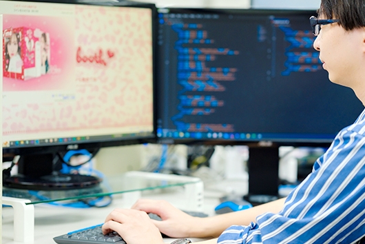 ゲーム画面・人物画像に施す画像処理・カメラやプリンターなどのデバイス制御など、プリで動くソフトウェア全般の開発を行っています。各技術分野のスペシャリストとリーダーで構成される組織で、企画者と共に考えたアイデアをソフトウェア技術で実現しています。