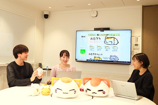 それぞれのメンバーが自分の担当業務に真摯に向き合い、意見を交わしながら、商品を市場に送り出すためのバトンをつないでいきます。お互いの意見を受け止め合う仲間たちがたくさんいる職場です。自分のアイデアや思いが形となり、ユーザーに届く喜びを日々感じています。フリューではキャラクターの世界観や市場のニーズを大切にし、世の中へ価値を創出しています。
