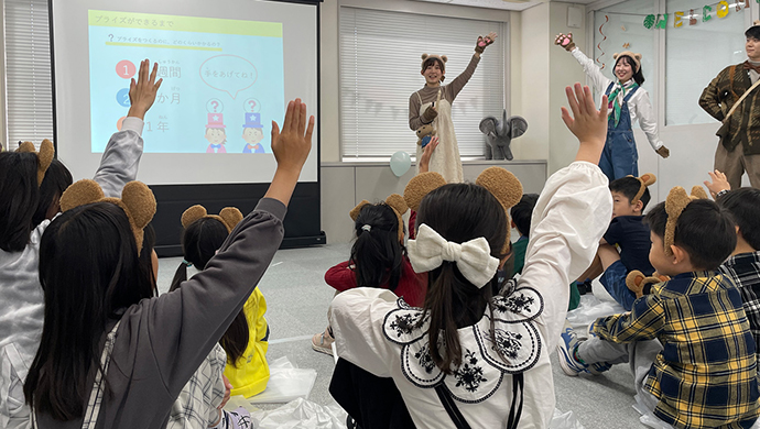 従業員およびその家族に対し「フリューおしごと体験ツアー」を本社にて開催。プリントシール機にまつわるお仕事紹介、プライズの商品企画体験、コンシューマゲームの試遊など各事業の魅力を体験するワークなどを催し、34家族計94名が参加しました。